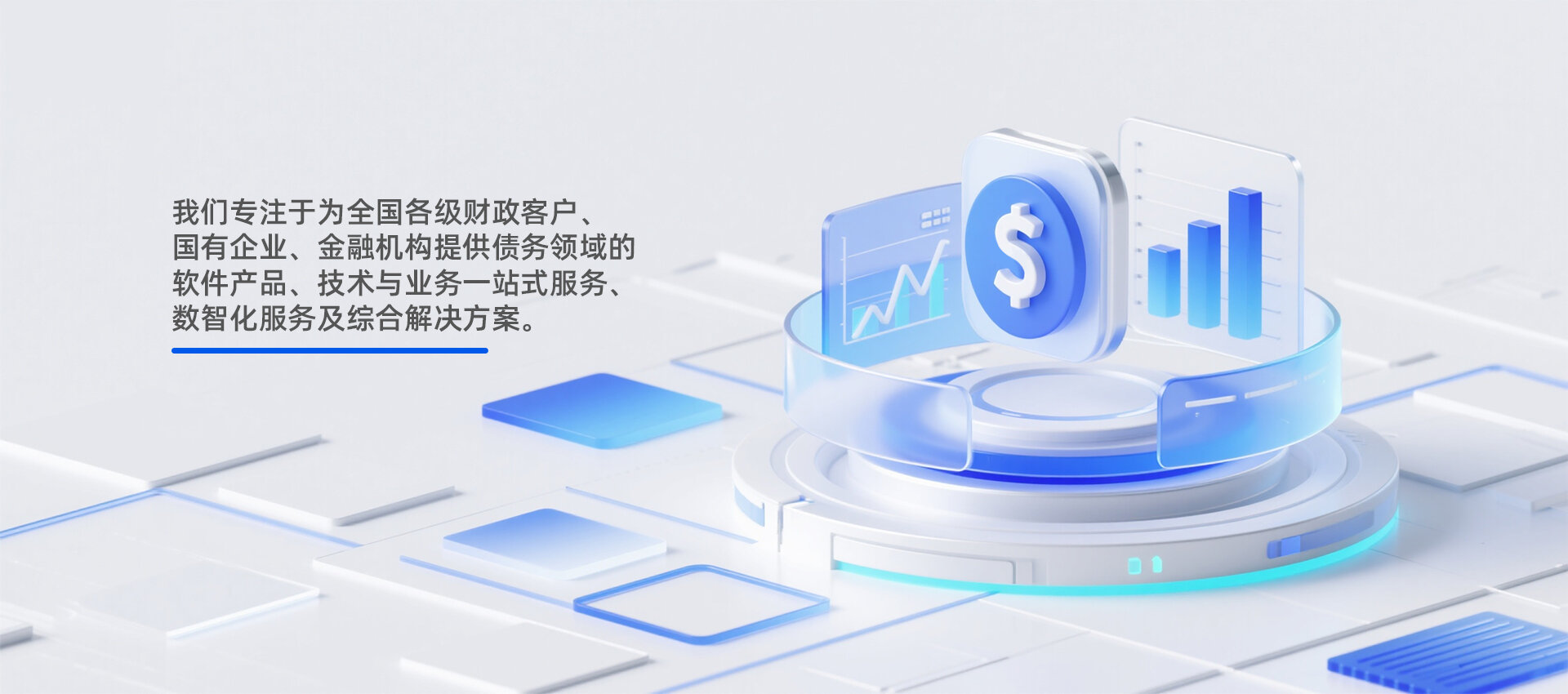 作为一家高新技术企业,我们专注于为全国各级财政客户、国有企业、金融机构提供债务领域的软件产品、技术与业务一站式服务、数智化服务及综合解决方案。